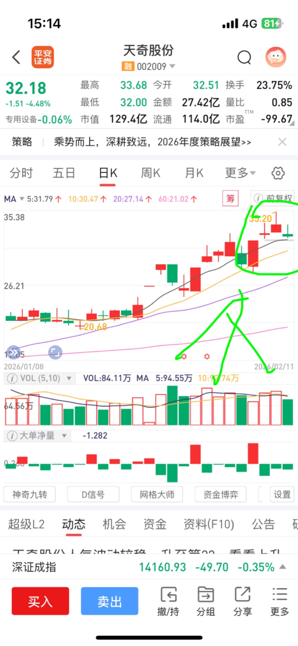 天奇股份,日线头肩顶,大家看,明天继续大跌