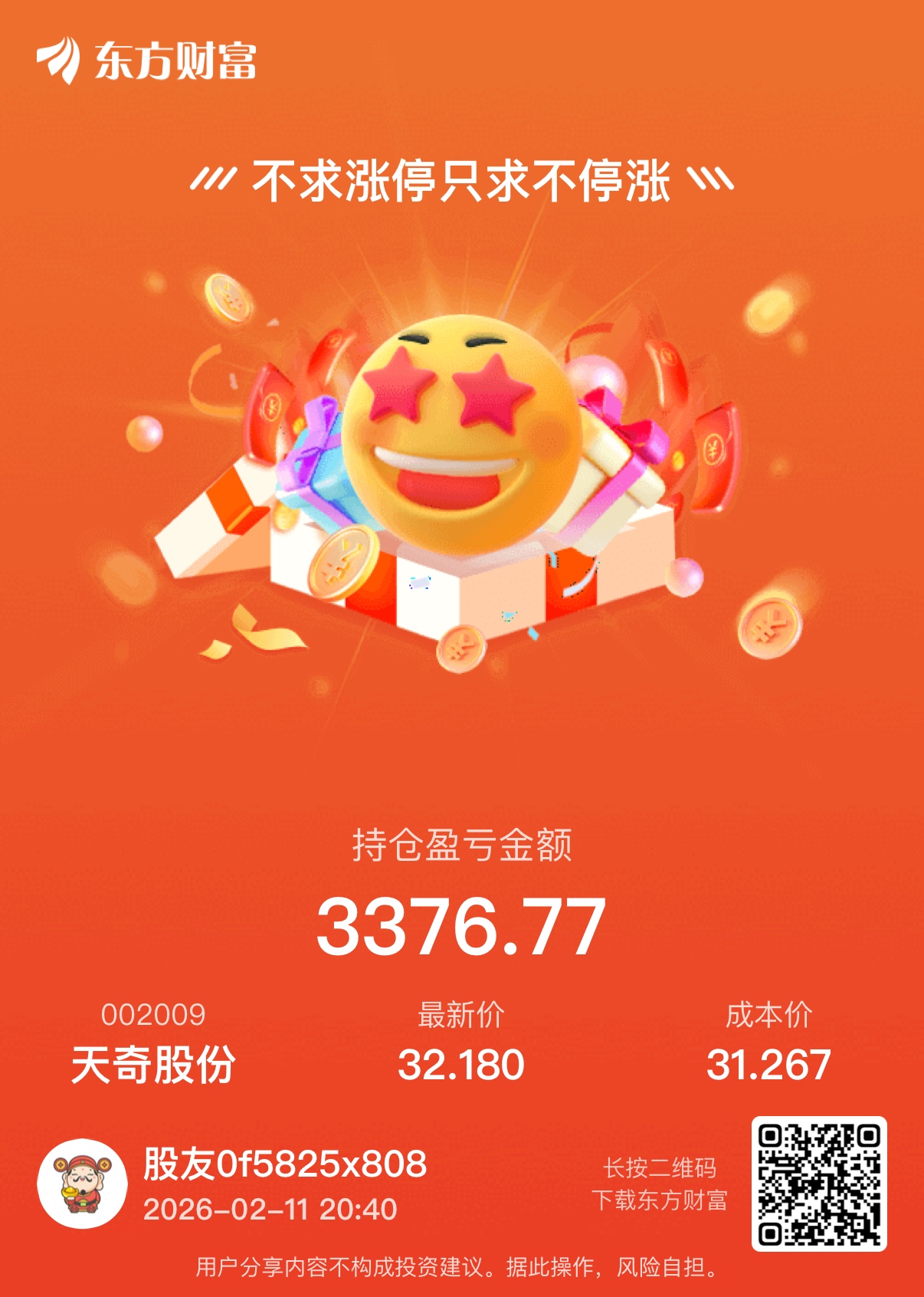 温馨提示: 1.根据《证券法》规定,禁止编造、传播虚假信息或者误导性信息,扰乱证券市场;2.用户在本社区发表的所有资料、言论等仅代表个人观点,与本网站立场无关,不对您构成任何投资建议。用户应基于自己的独立判断,自行决定证券投资并承担相应风险。《东方财富社区管理规定》