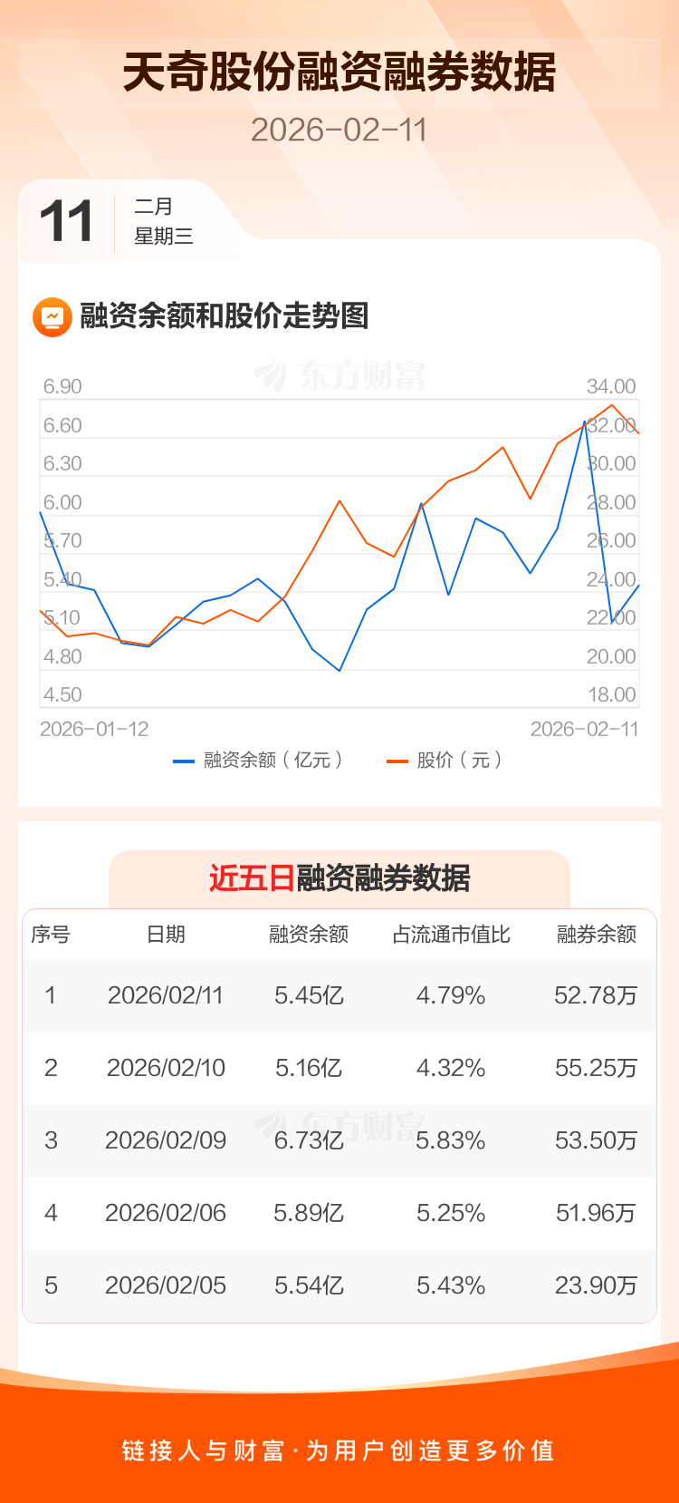交易所最新数据显示,天奇股份于2026年2月11日获融资买入2.36亿元,融资偿还2.06亿元,当日融资净买入2939.49万元。目前,该股融资余额5.45亿,占流通市值比例为4.79%。
