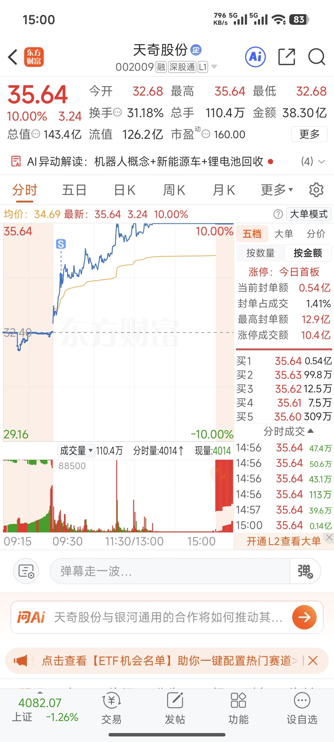 $天奇股份(SZ002009)$ 本来想做一下T的,然后有事没看盘。心里苦