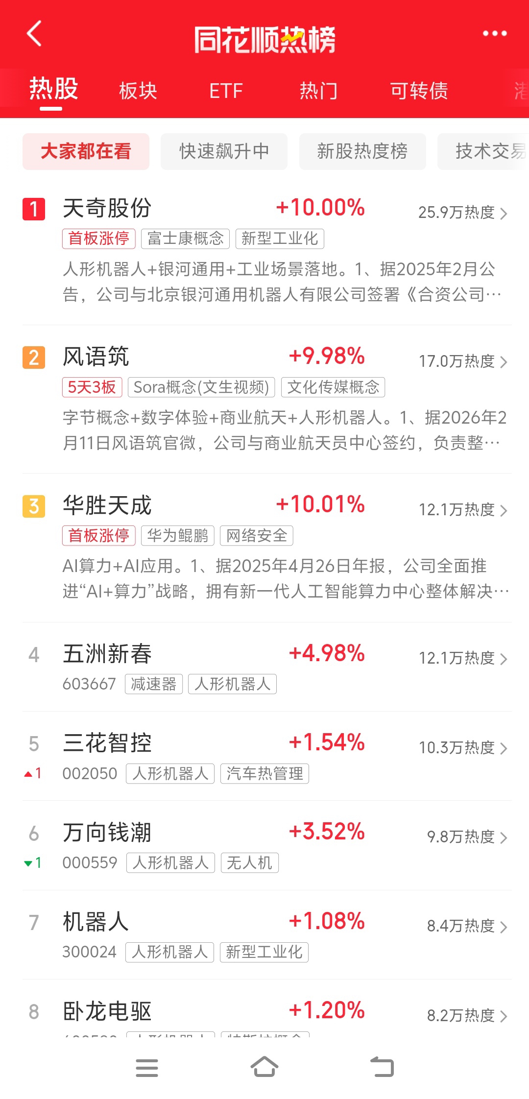 $天奇股份(SZ002009)$ 同花顺天奇第一,前八全是机器人。