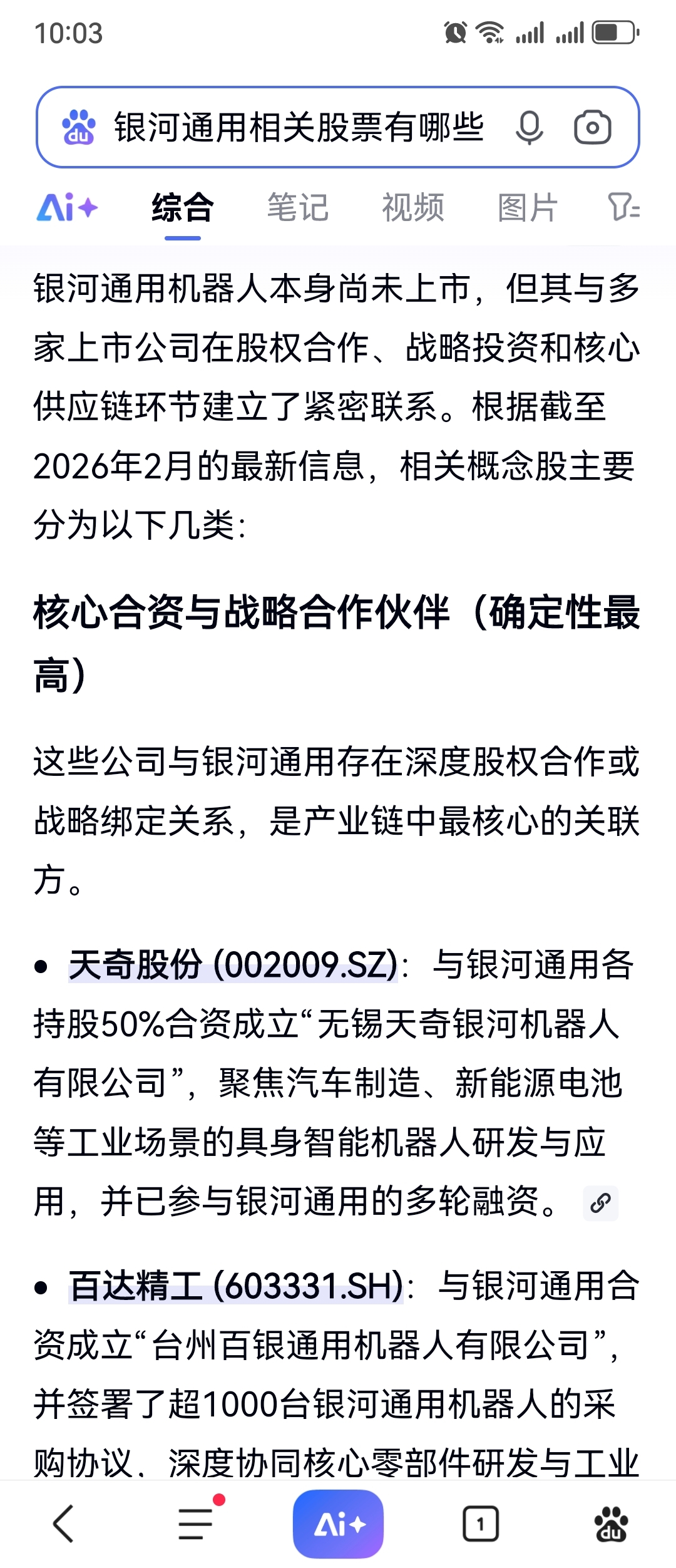 $天奇股份(SZ002009)$ 各位朋友看看春节晚会节目单,有宇树科技 还有银河通用,银河通用一半股份 是天奇股份 持股。朋友们,两市机器人重组概念股票 都是涨10倍起,最低100元的,而且还没有重组成功,最重要的是还没有机器人落地。更加不用说上全世界最大的春节晚会。品牌影响力那是太大太大。大家自己想天奇股份 春节后多少个无量涨停!我们拭目以待
