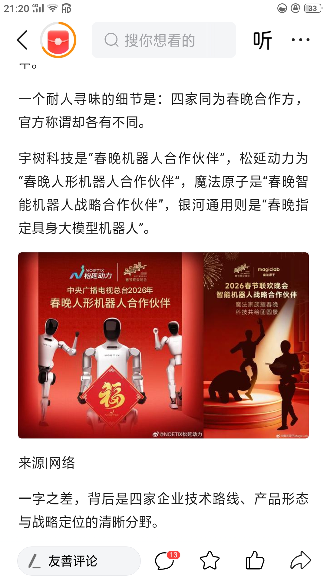 $天奇股份(SZ002009)$ 2025年宇树机器人属于1.0时代,2026年宇树机器人属于2.0时代,2026年银河通用属于3.0时代,可以人机对话交流,走入家庭,盘核桃,带手串,追求时尚,看到机器人拿水瓶,叠衣服,高精密动作!沈腾马丽小品出众,今天为了机器人拍了个微电影!主角是机器人呀!片尾也说了正月十五有好戏!