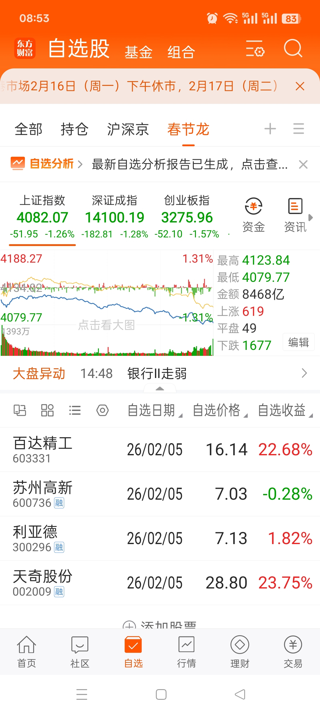 $天奇股份(SZ002009)$ $利亚德(SZ300296)$ $百达精工(SH603331)$ 之前预测春节龙大概率就是机器人,选了4个票,目前人气都是飙升,天奇,利亚德数一数二,开盘预计4个票都是板