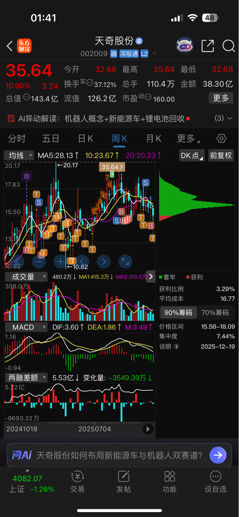 $天奇股份(SZ002009)$ 第二个老朋友当年抛弃了去玩航天,两个星期后你就起飞了台湾技嘉科技参观我没走,丰田柱式会社参考我没走,富士康合作2千机器人我都还在。我一卖年底马上两个一字突破20,主力你确实赢了认知没到不怨你