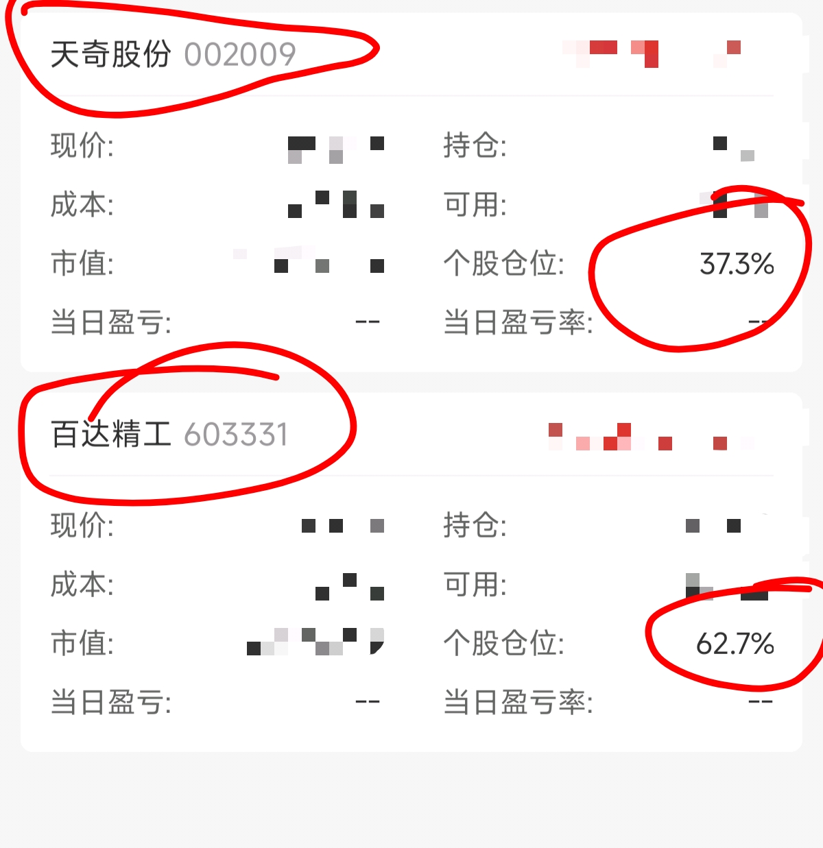 $天奇股份(SZ002009)$ $百达精工(SH603331)$ 我的持仓——天奇股份百达精工=100%,你让我怎么输?