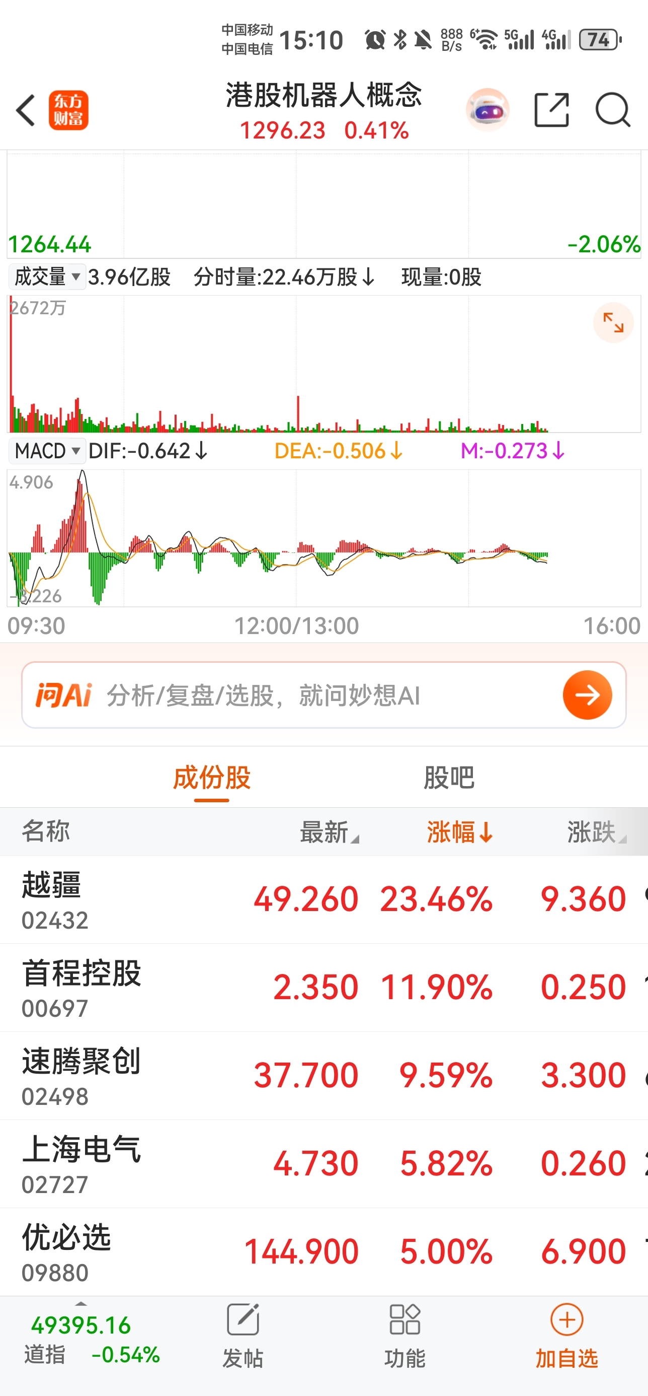 收盘,港股机器人逆势上涨!半仓机器人,天奇+万向,静等开市!
