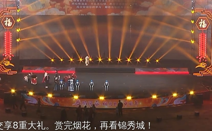 今天浏阳烟火晚会上的机器人是哪家的?表演后段,有一个机器人直接罢工,直愣愣地站那