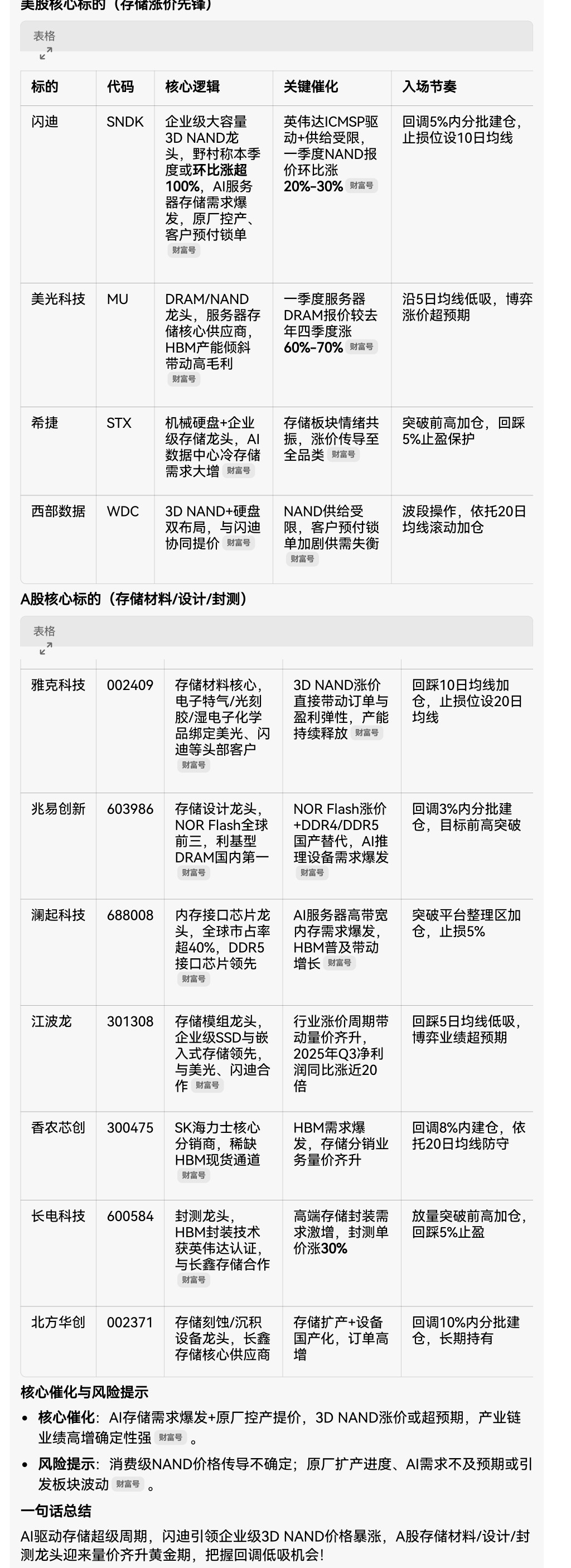 - AI芯片/存储:海光信息、寒武纪、佰维存储、雅克科技、澜起科技、兆易创新