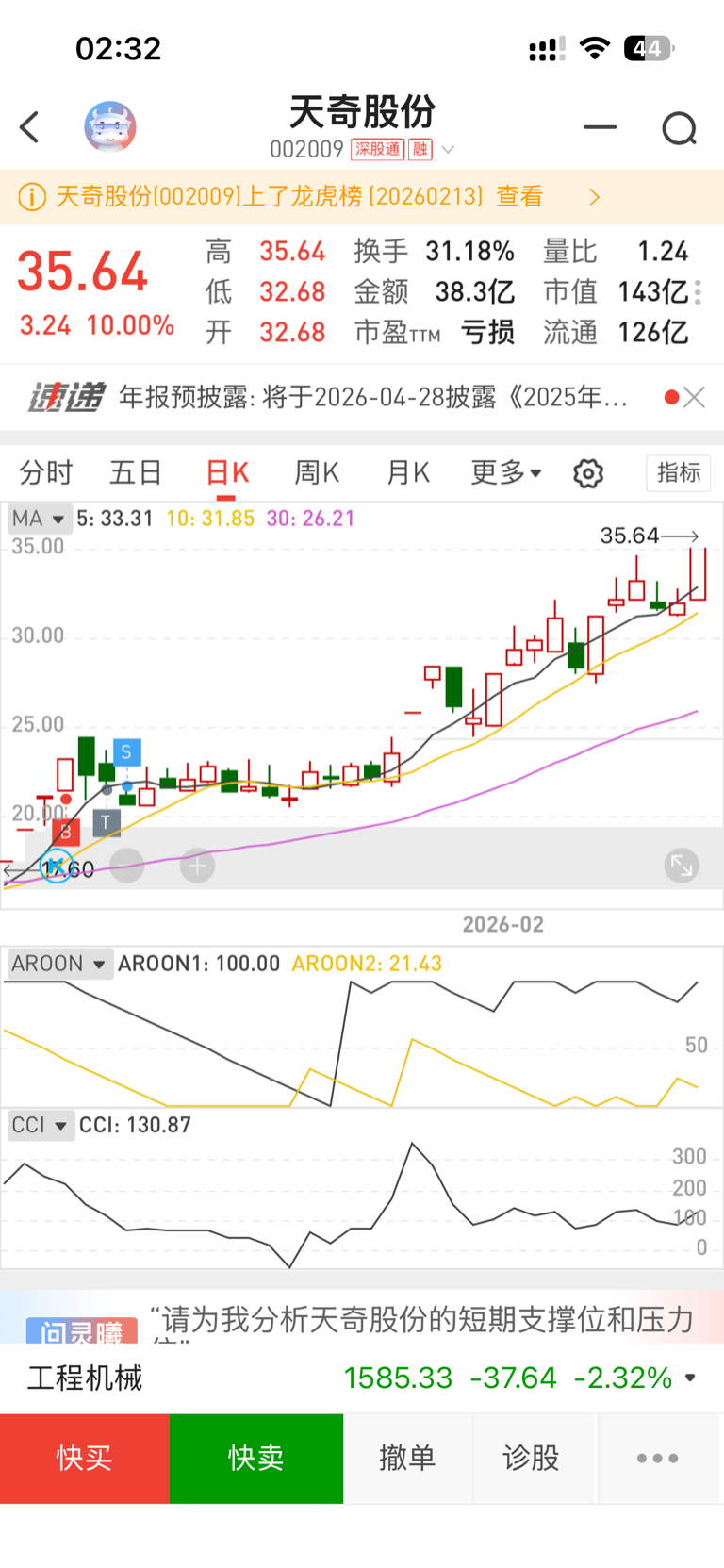 $天奇股份(SZ002009)$