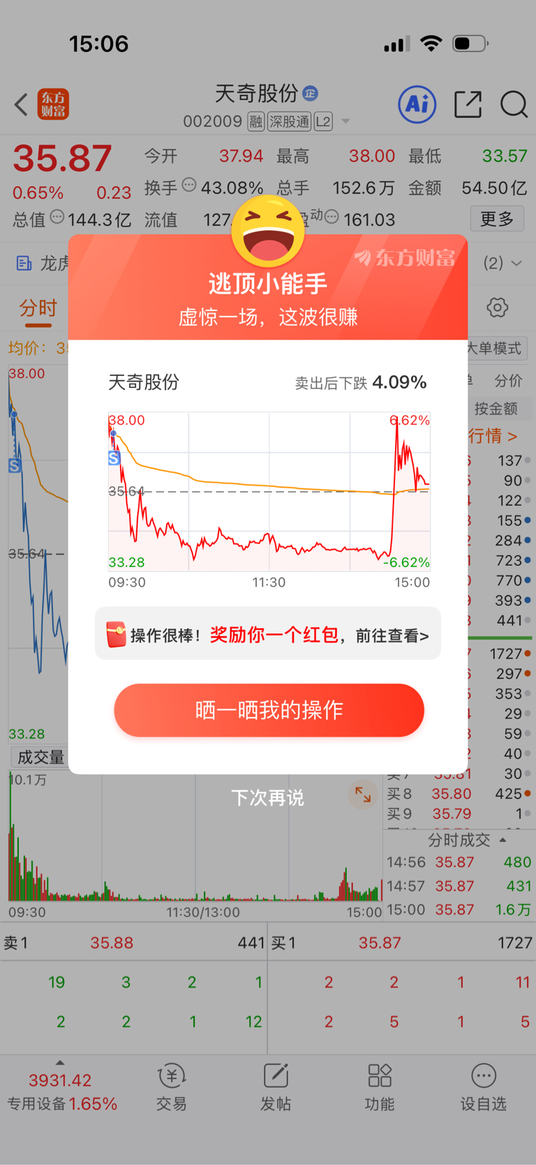 $天奇股份(SZ002009)$ 成功把我洗掉了.明天你可以涨停了吧