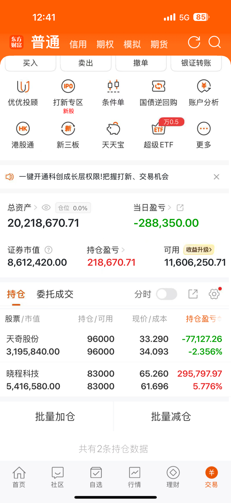 今日暂时没有开新仓,继续持有$天奇股份(SZ002009)$ $晓程科技(SZ300139)$