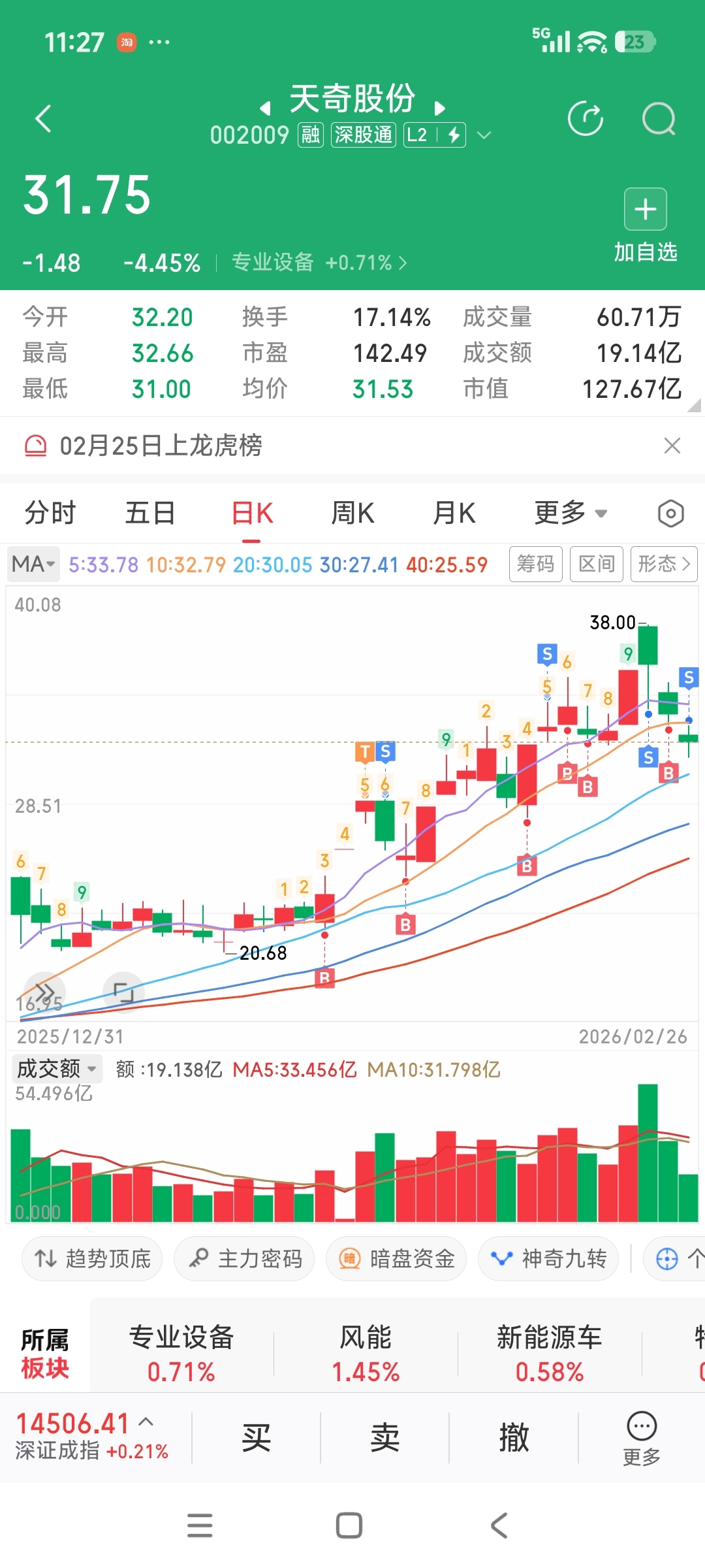 $天奇股份(SZ002009)$ 我已清仓