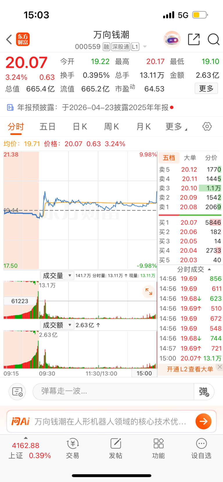 万向尾盘竞价2.6亿抢筹,天奇我又回来了
