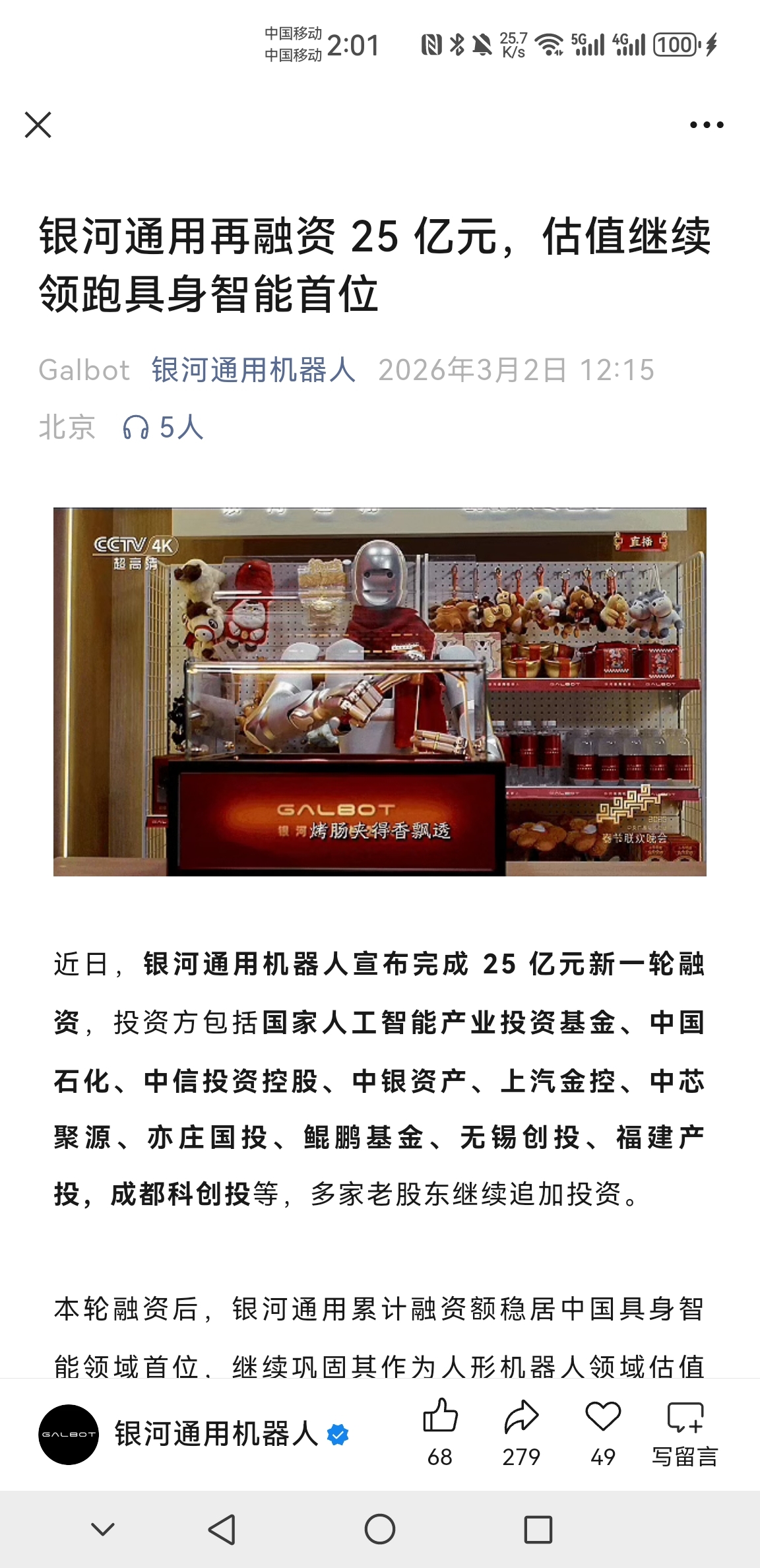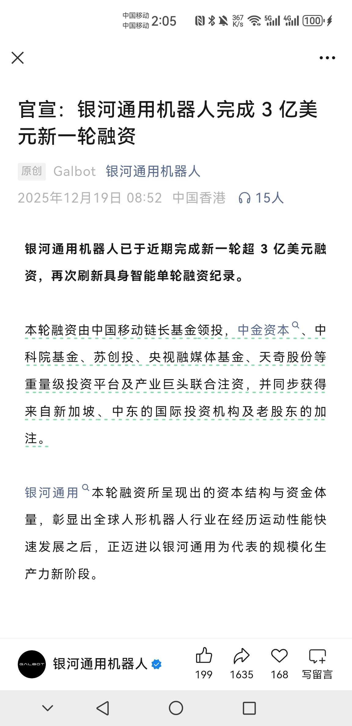 $天奇股份(SZ002009)$ 太猛了,刚融完三个亿美金,过了两个月,再融资25亿,产业基金,国家资本、境外资本,天气左手银河通用,右手优必选,人形机器人的第一和第二,赶紧再跌吧,还想要筹码?定增完了就没你什么事儿了。