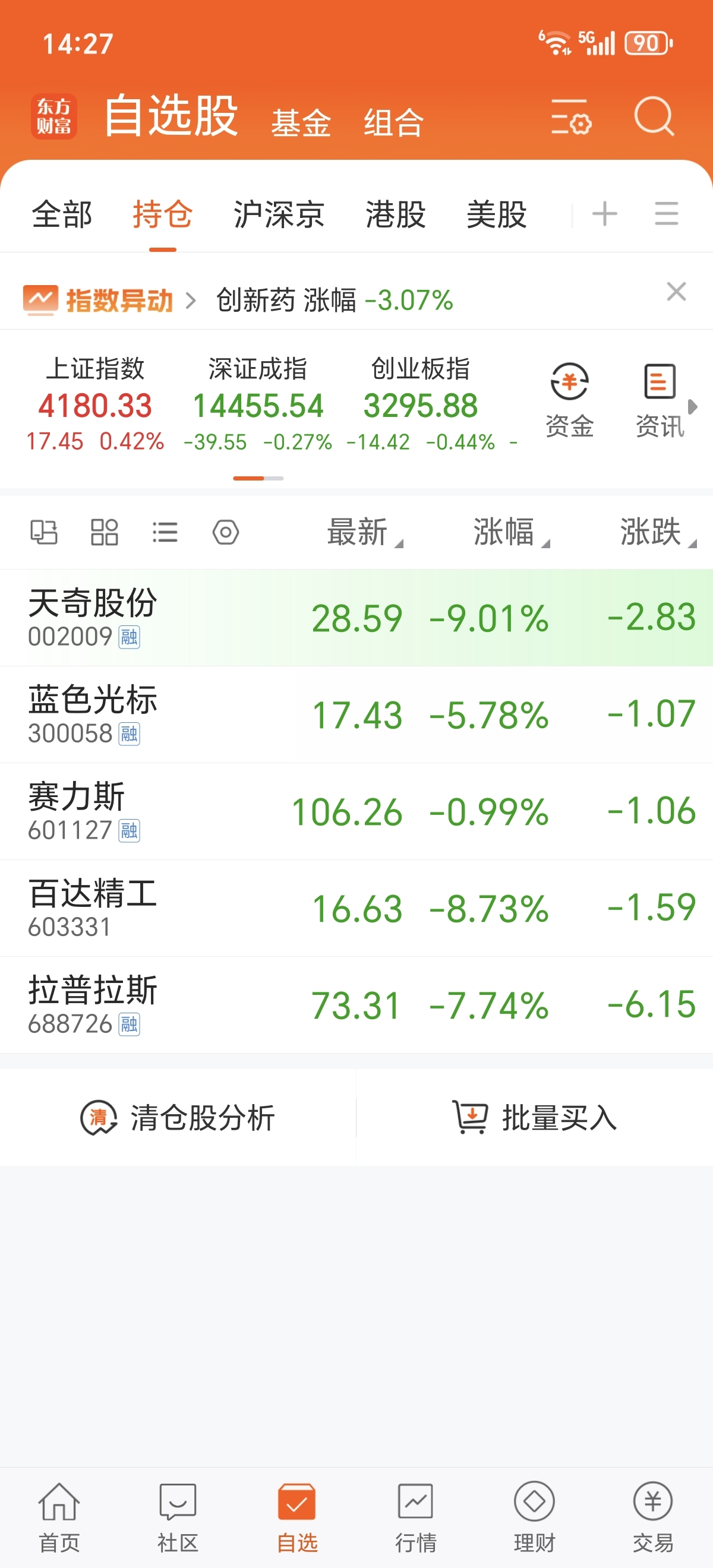 $天奇股份(SZ002009)$ 持仓5支票全绿