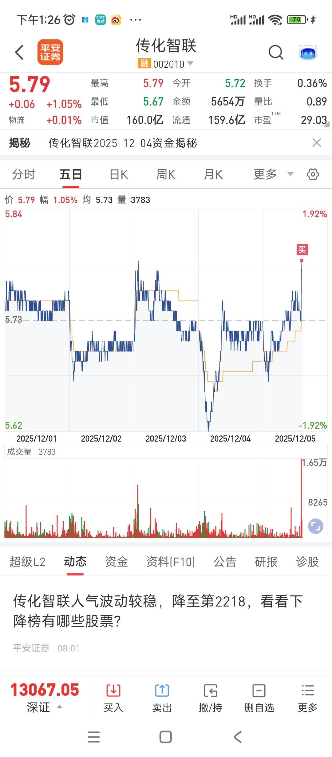 $传化智联(SZ002010)$ 完了,冲动了