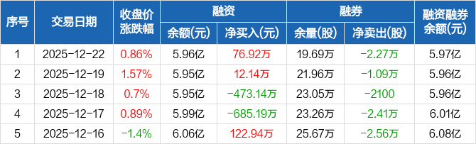传化智联:融资净买入76.92万元,融资余额5.96亿元(12-22)