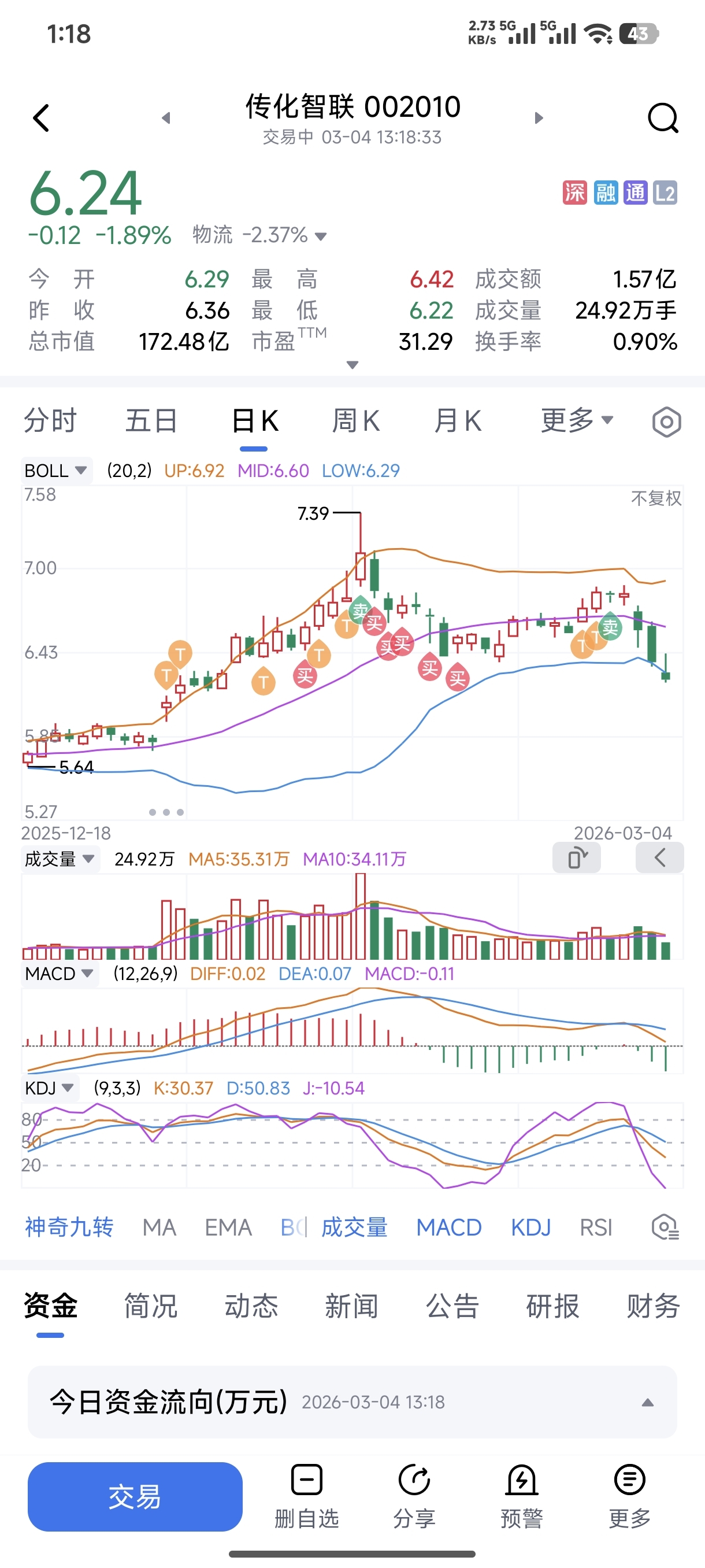 $传化智联(SZ002010)$ 2月26日全清仓的,现在要不要买回来