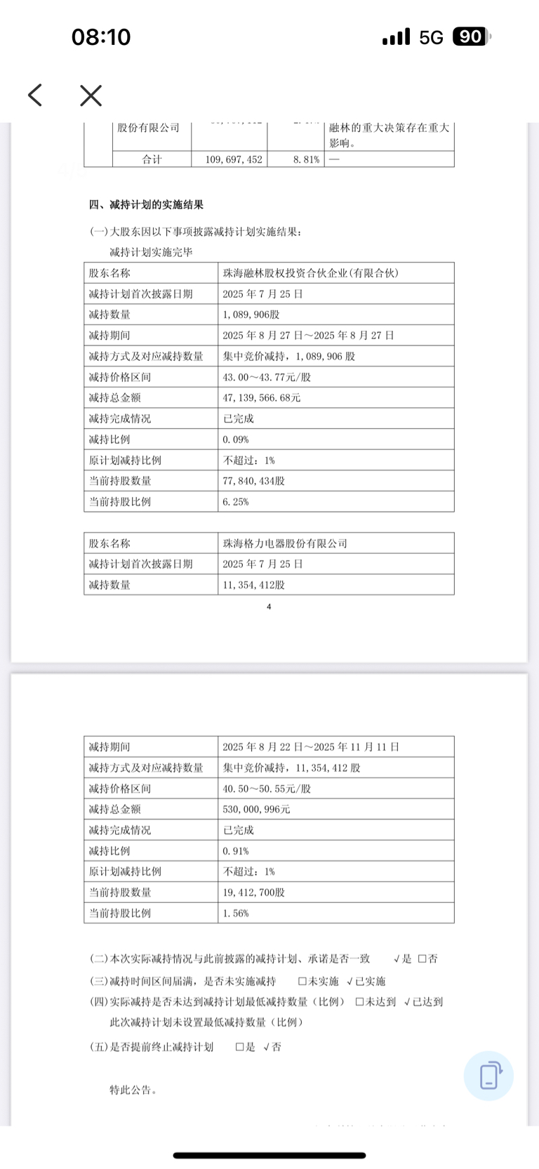 格力是高手啊,并且不拖泥带水。有一部分还卖在了最高点。