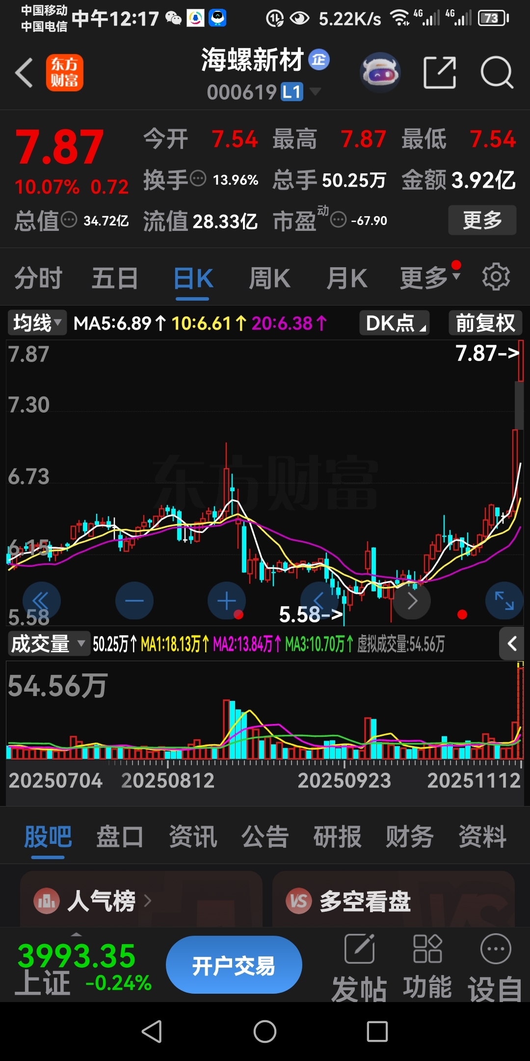 $盾安环境(SZ002011)$ 持有258.81万股海螺新材,2个板了,炒海螺去,别在这老火炖汤