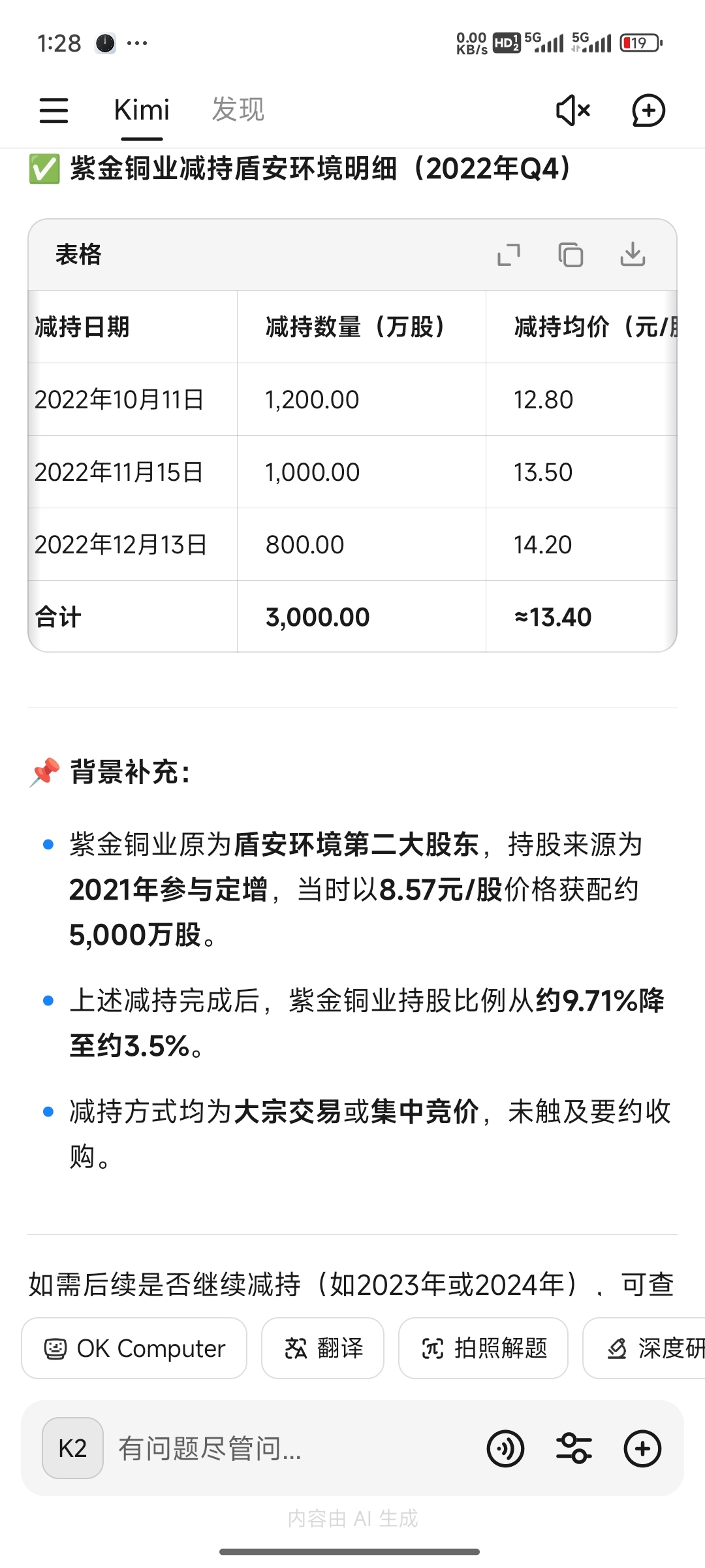 现在已经跌破紫金最低减持价……紫金钱那么多,不至于那么傻,现在还减持!