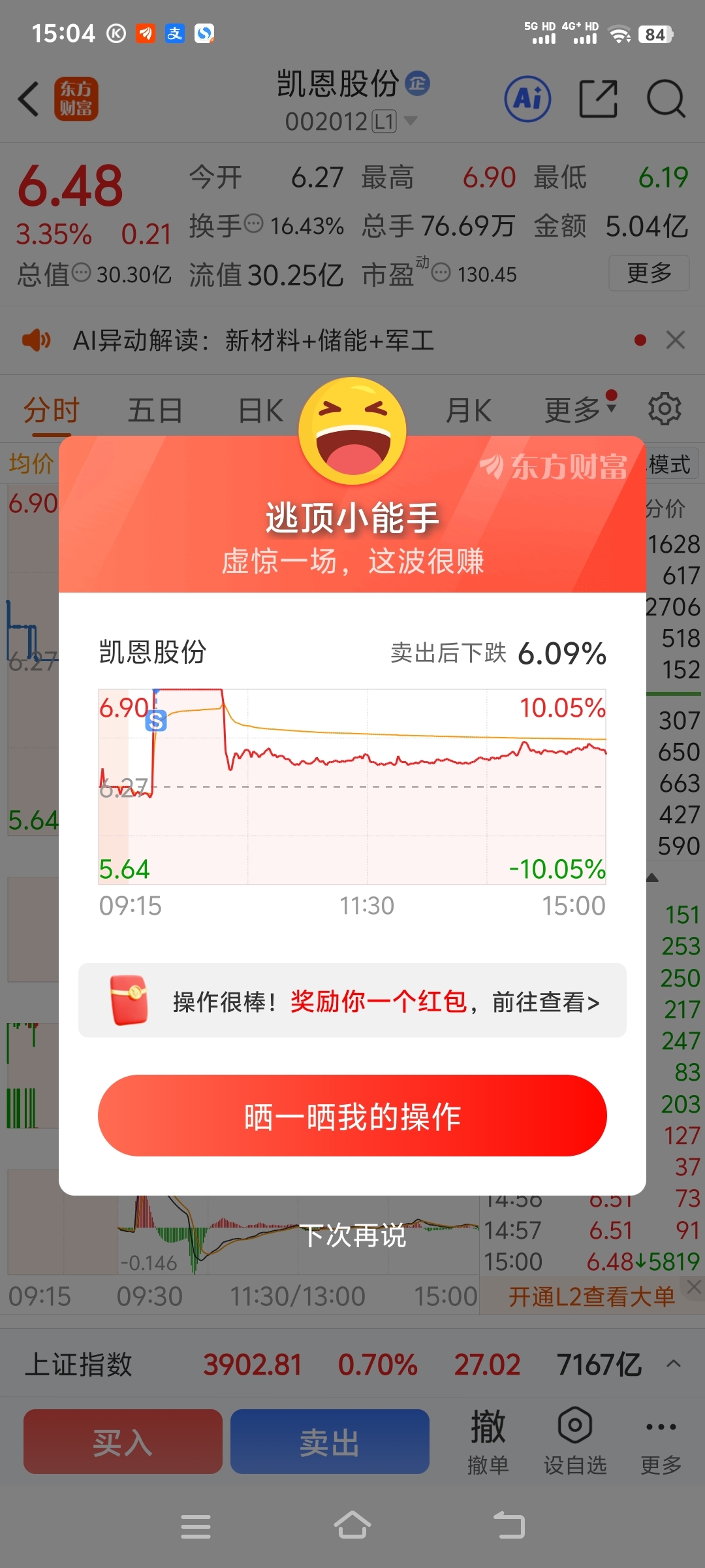 $凯恩股份(SZ002012)$ 就知你杂毛不成气候我先走为敬