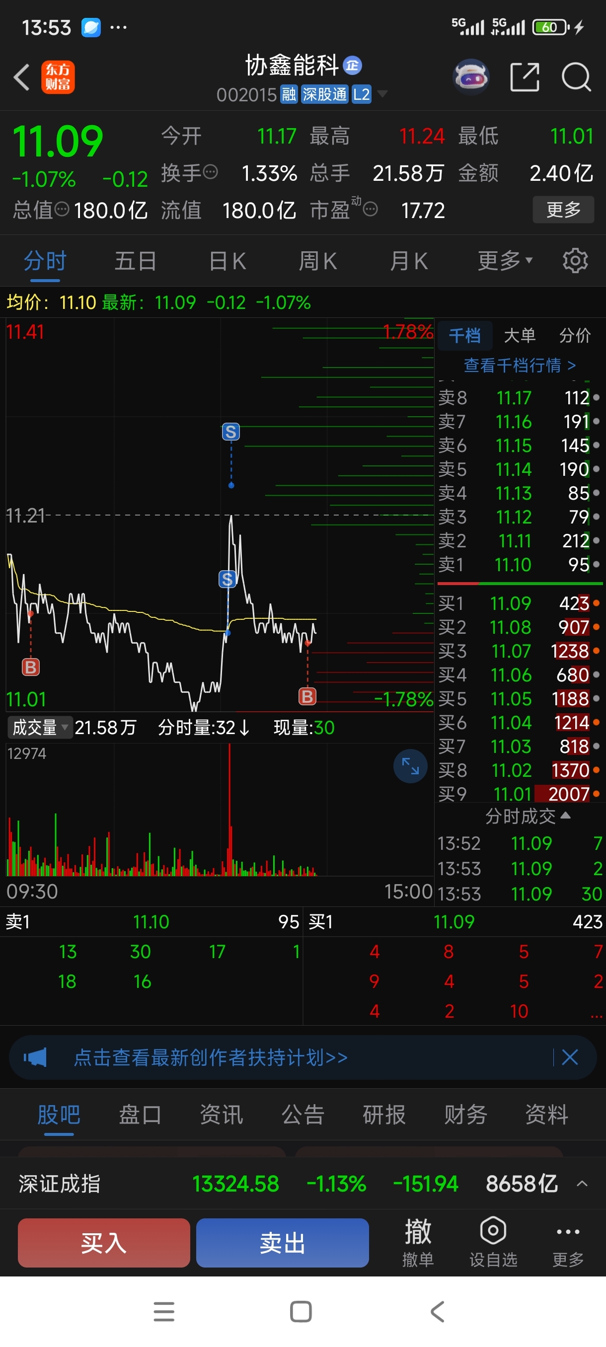 $协鑫能科(SZ002015)$ 很难做T,但我还是做了,跟够庄斗,很无奈