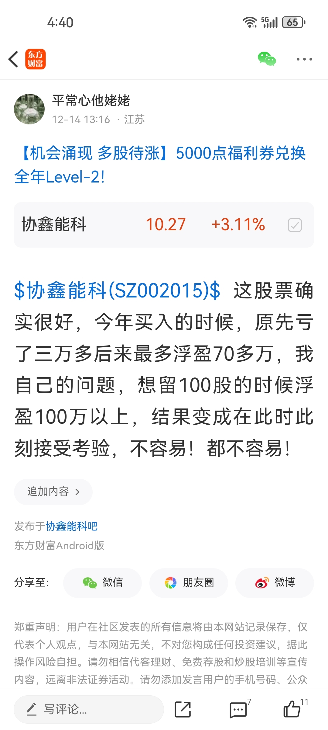 温馨提示: 1.根据《证券法》规定,禁止编造、传播虚假信息或者误导性信息,扰乱证券市场;2.用户在本社区发表的所有资料、言论等仅代表个人观点,与本网站立场无关,不对您构成任何投资建议。用户应基于自己的独立判断,自行决定证券投资并承担相应风险。《东方财富社区管理规定》