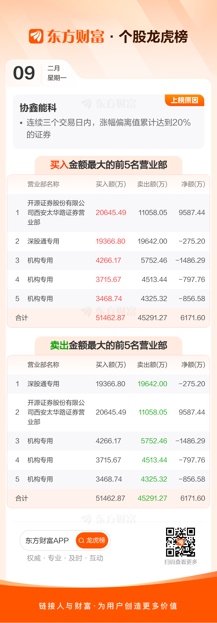 交易所2026年2月9日公布的交易公开信息显示,协鑫能科因成为连续三个交易日内,涨幅偏离值累计达到20%的证券上榜。协鑫能科当日收报13.27元,涨跌幅10.03%,换手率9.82%,成交额20.70亿。异常期间2月5日至2月9日,期间涨幅21.97%,累计偏离值21.42%,区间成交额39.12亿。