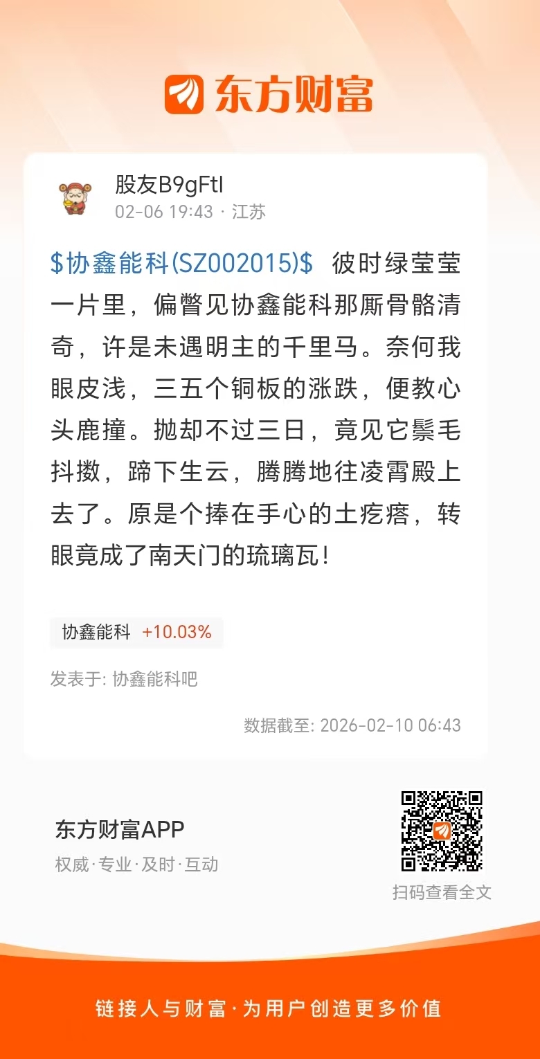 温馨提示: 1.根据《证券法》规定,禁止编造、传播虚假信息或者误导性信息,扰乱证券市场;2.用户在本社区发表的所有资料、言论等仅代表个人观点,与本网站立场无关,不对您构成任何投资建议。用户应基于自己的独立判断,自行决定证券投资并承担相应风险。《东方财富社区管理规定》