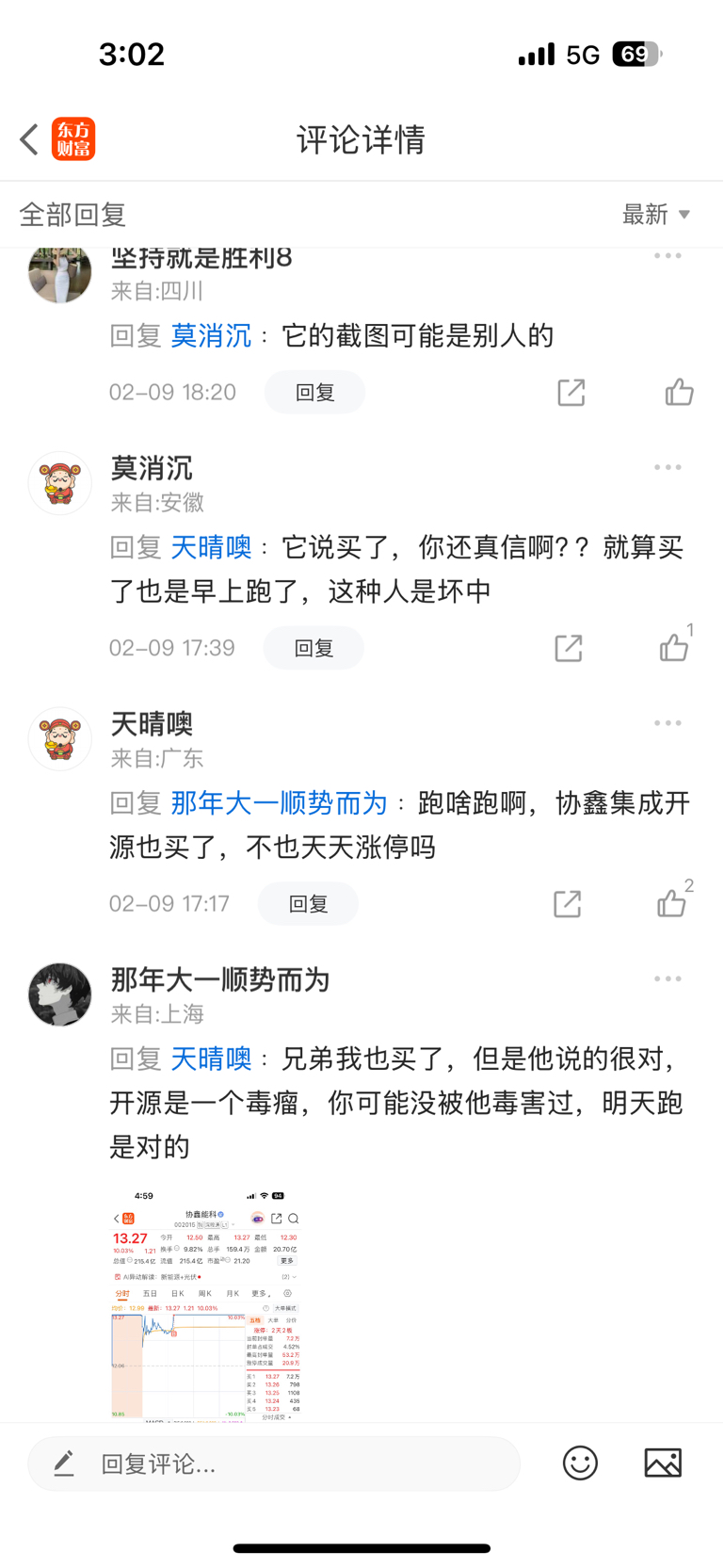 温馨提示: 1.根据《证券法》规定,禁止编造、传播虚假信息或者误导性信息,扰乱证券市场;2.用户在本社区发表的所有资料、言论等仅代表个人观点,与本网站立场无关,不对您构成任何投资建议。用户应基于自己的独立判断,自行决定证券投资并承担相应风险。《东方财富社区管理规定》