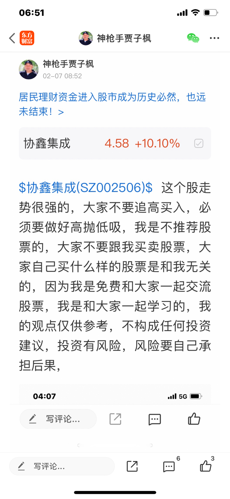 $协鑫能科(SZ002015)$ 这个股我是二月七号发表文章看涨的股票,我是不推荐股票的,大家不要跟我买卖股票,大家自己买什么样的股票是和我无关的,因为我是免费和大家一起交流股票,我是和大家一起学习的,我的观点仅供参考,投资有风险,风险要自己承担后果,
