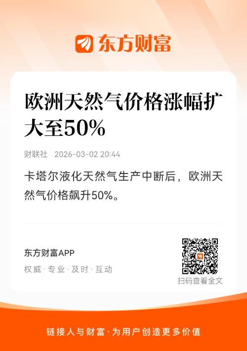 卡塔尔液化天然气生产中断后,欧洲天然气价格飙升50%。