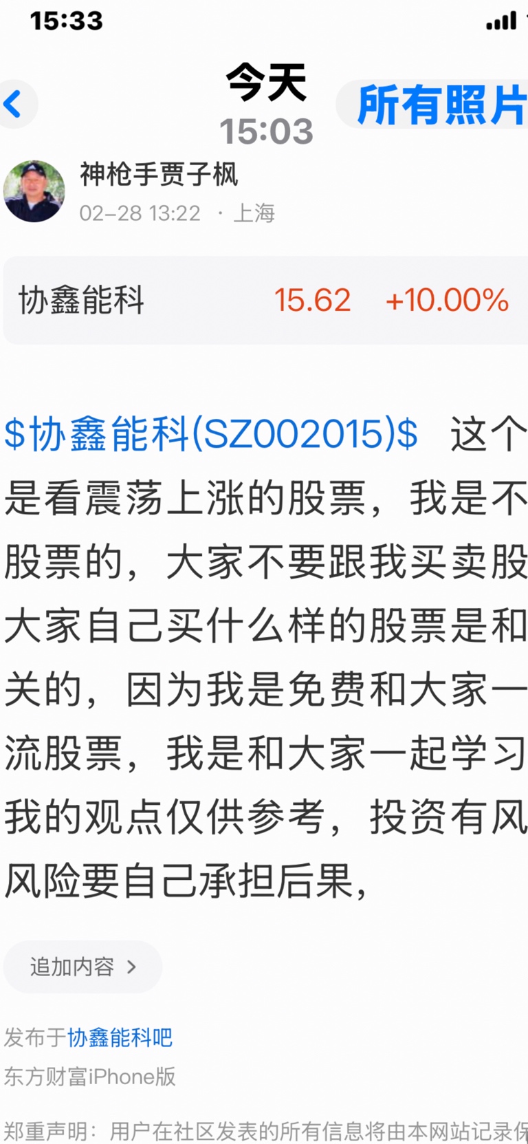 $协鑫能科(SZ002015)$ 这个股我是二月二十八号发表文章看涨的股票,我是不推荐股票的,大家不要跟我买卖股票,大家自己买什么样的股票是和我无关的,因为我是免费和大家一起交流胶票,我是和大家交流股票,我是和大家一起学习的,我的观点仅供参考,投资有风险,风险要自己承担后果,