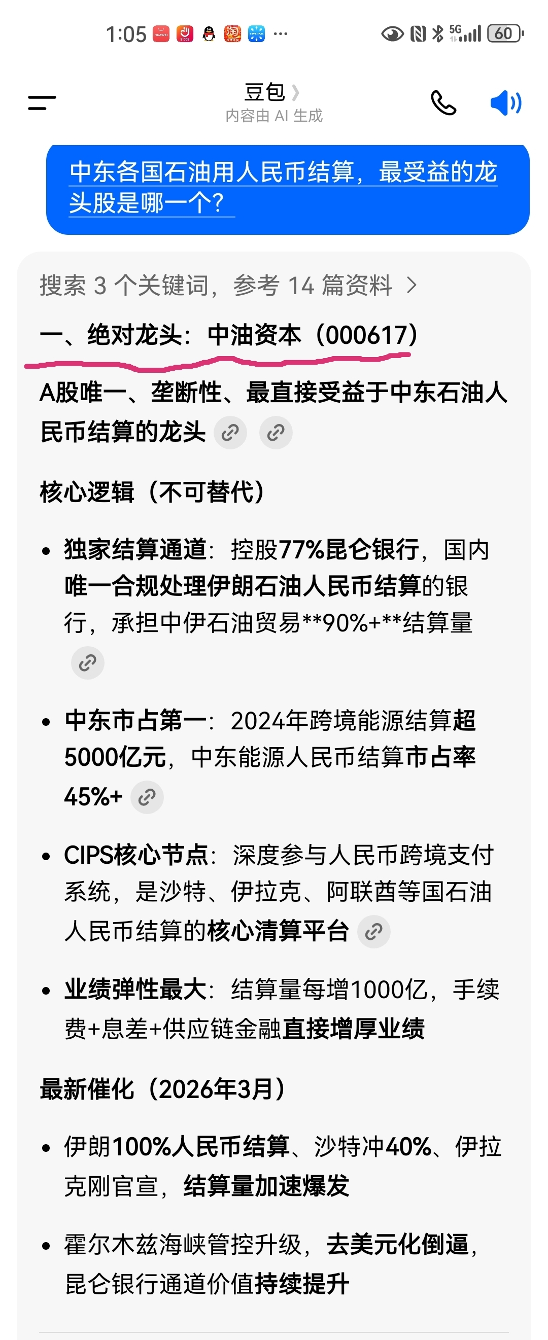 中东各国石油人民币结算加速,绝对龙头中油资本将有翻倍行情