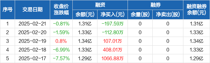 世荣兆业:融资净偿还197.59万元,融资余额1.31亿元(02-21)