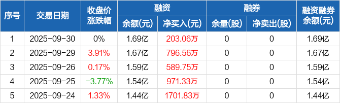 世荣兆业:连续5日融资净买入累计4262.52万元(09-30)