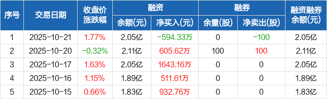 世荣兆业:融资净偿还594.33万元,融资余额2.05亿元(10-21)