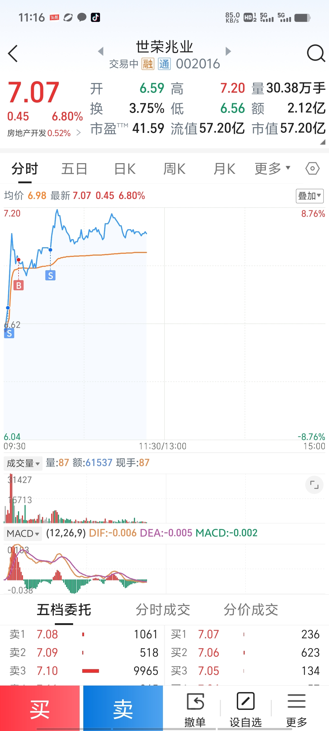 $世荣兆业(SZ002016)$ 本来想做个T,这下好了,一半仓没有了,进也不敢进。7个点的行情怒赚了一个点