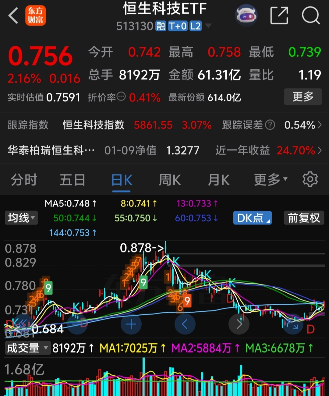 今天0.74附近建仓的恒生科技etf,喜欢的可以玩玩,t+0,当时无限量买卖!