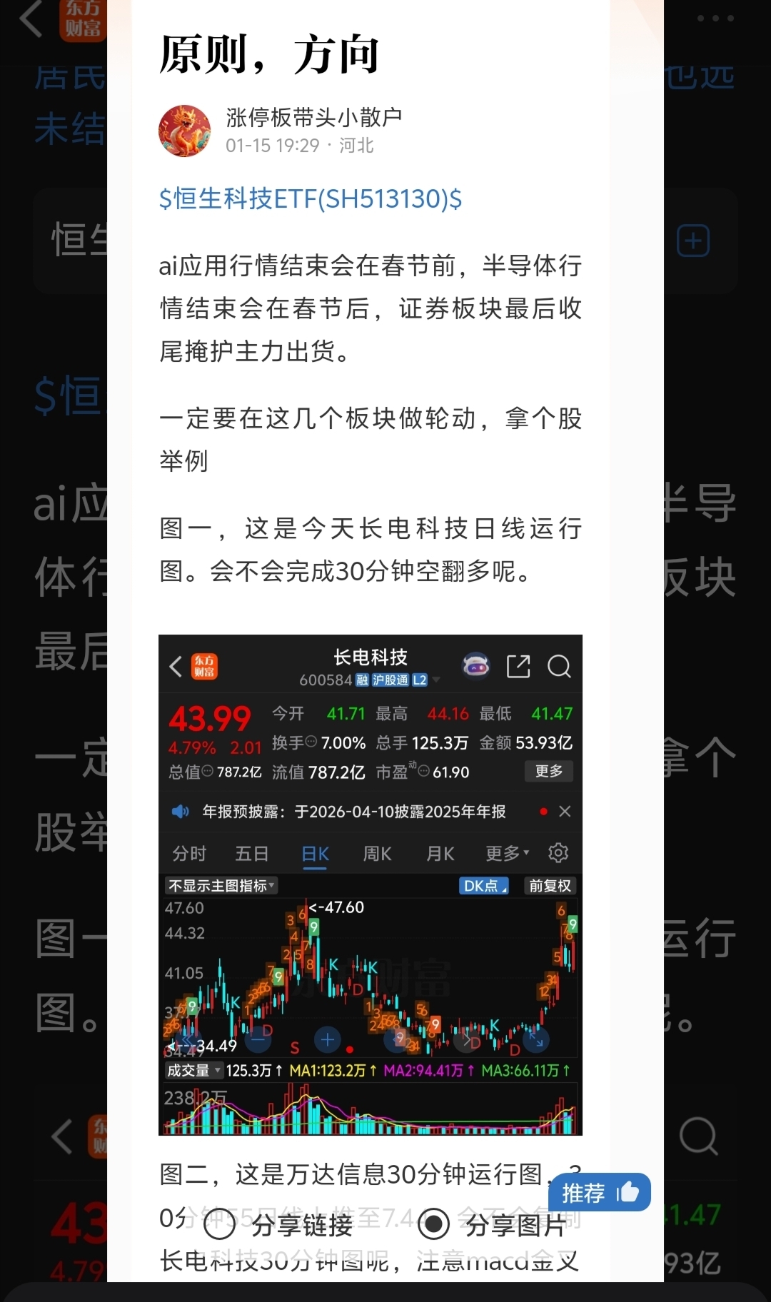 本人15号再次重申了一季度的三大主线,而且首位强调长电科技。目前稳居人气龙第一,