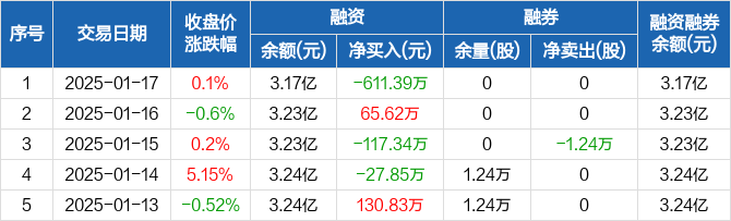 东信和平:融资净偿还611.39万元,融资余额3.17亿元(01-17)