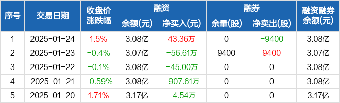 东信和平:融资净买入43.36万元,融资余额3.08亿元(01-24)