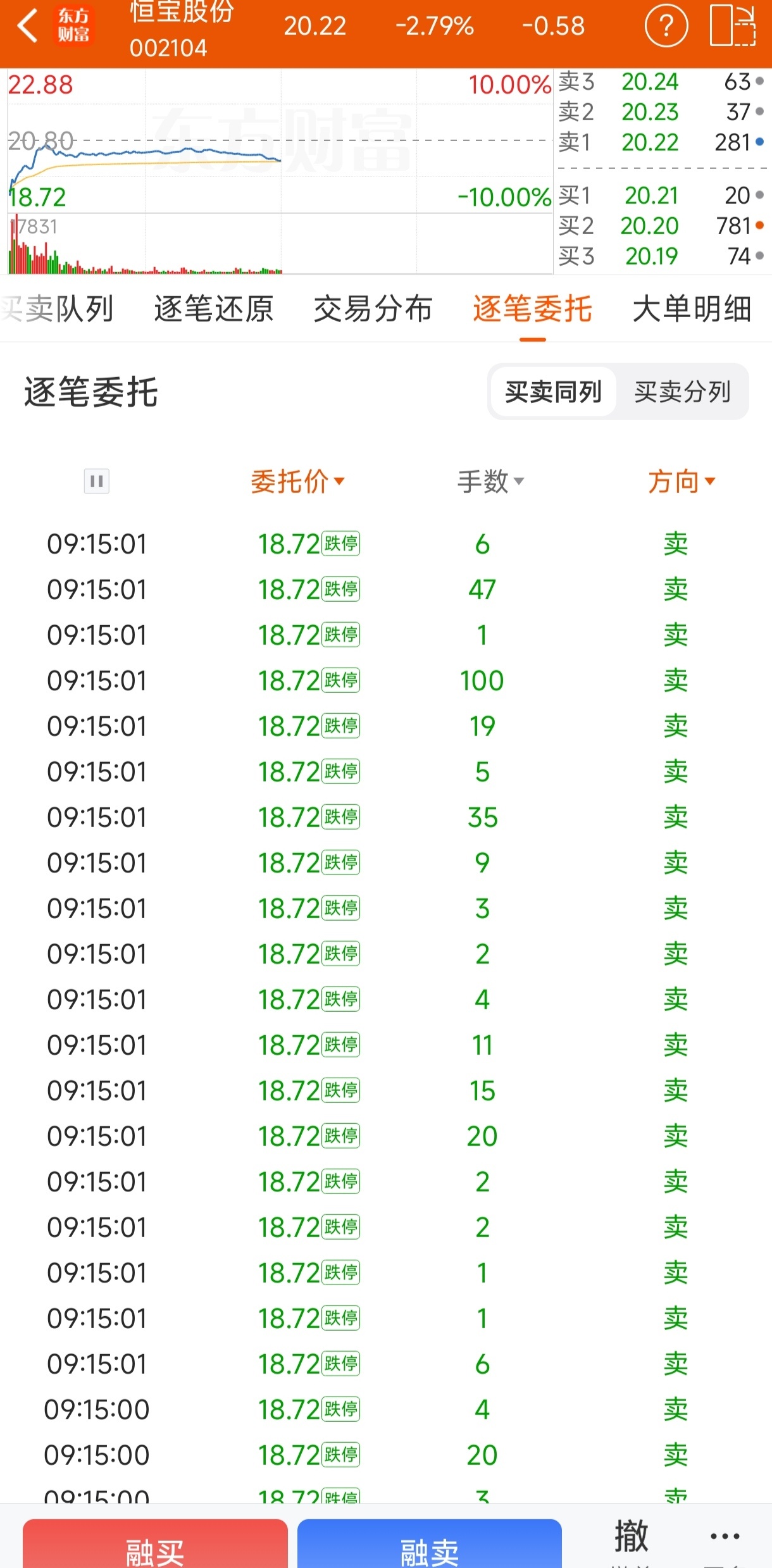 特别查9:15~9:20的超过100手的所有买卖单,证明都是那些几手,怕连续跌,开盘跑