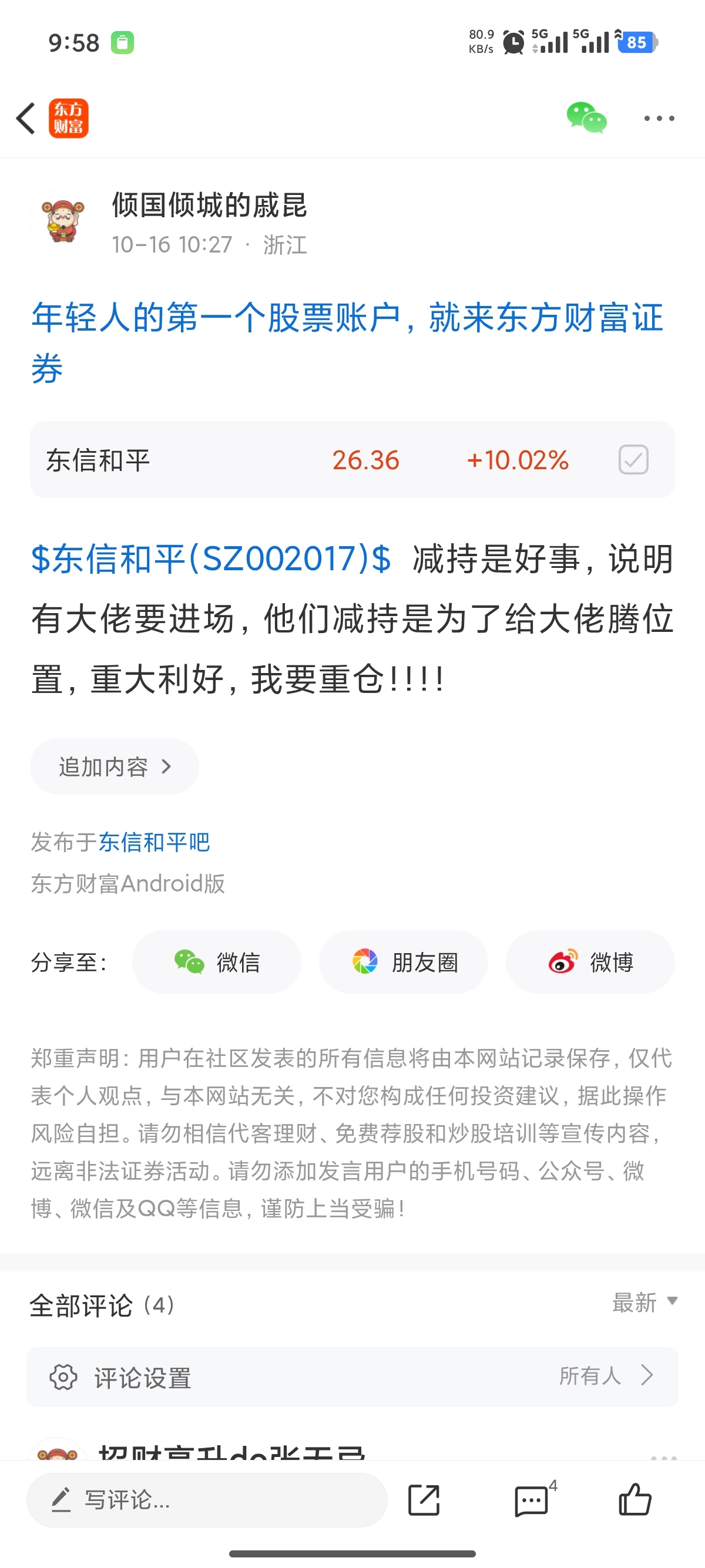 温馨提示: 1.根据《证券法》规定,禁止编造、传播虚假信息或者误导性信息,扰乱证券市场;2.用户在本社区发表的所有资料、言论等仅代表个人观点,与本网站立场无关,不对您构成任何投资建议。用户应基于自己的独立判断,自行决定证券投资并承担相应风险。《东方财富社区管理规定》