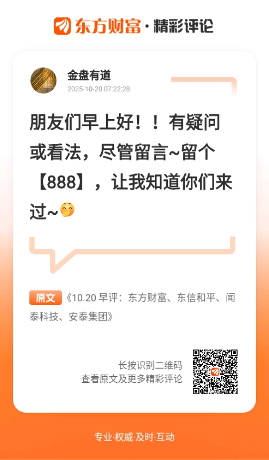 发表于 2025-10-20 09:19:08 东方财富Android版 发布于 贵州