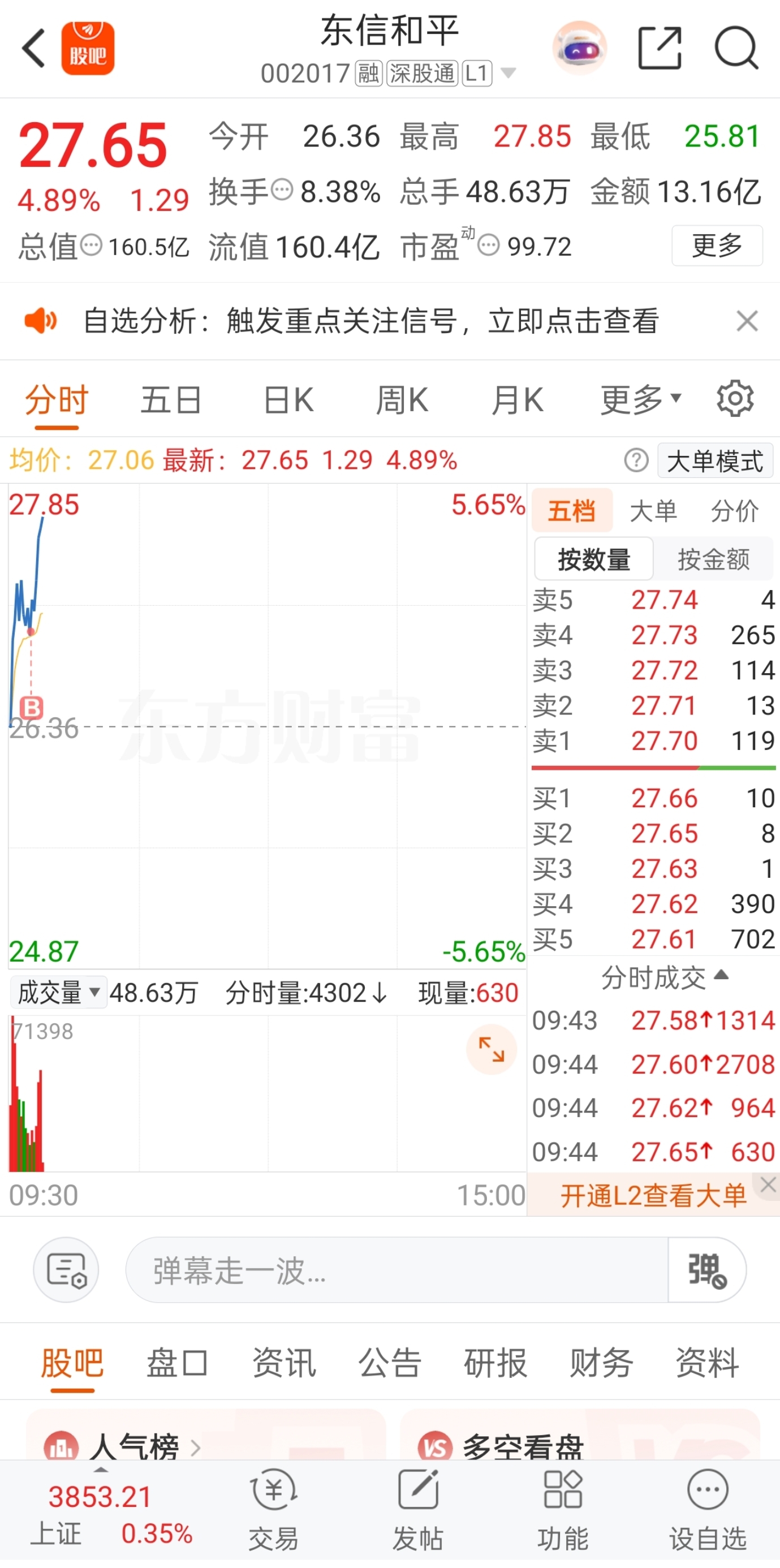 早盘选择低吸介入了$东信和平(SZ002017)$ 期待你的表现