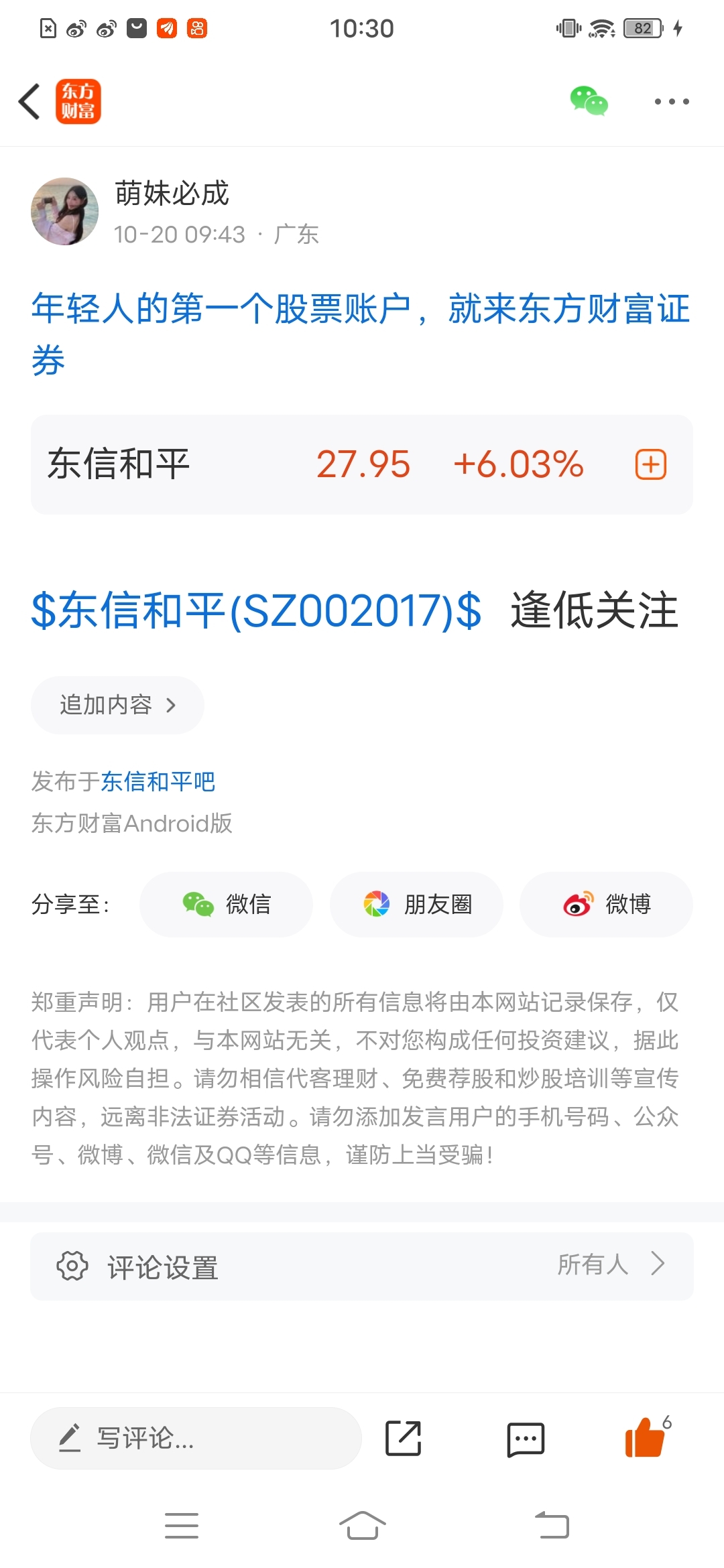 温馨提示: 1.根据《证券法》规定,禁止编造、传播虚假信息或者误导性信息,扰乱证券市场;2.用户在本社区发表的所有资料、言论等仅代表个人观点,与本网站立场无关,不对您构成任何投资建议。用户应基于自己的独立判断,自行决定证券投资并承担相应风险。《东方财富社区管理规定》