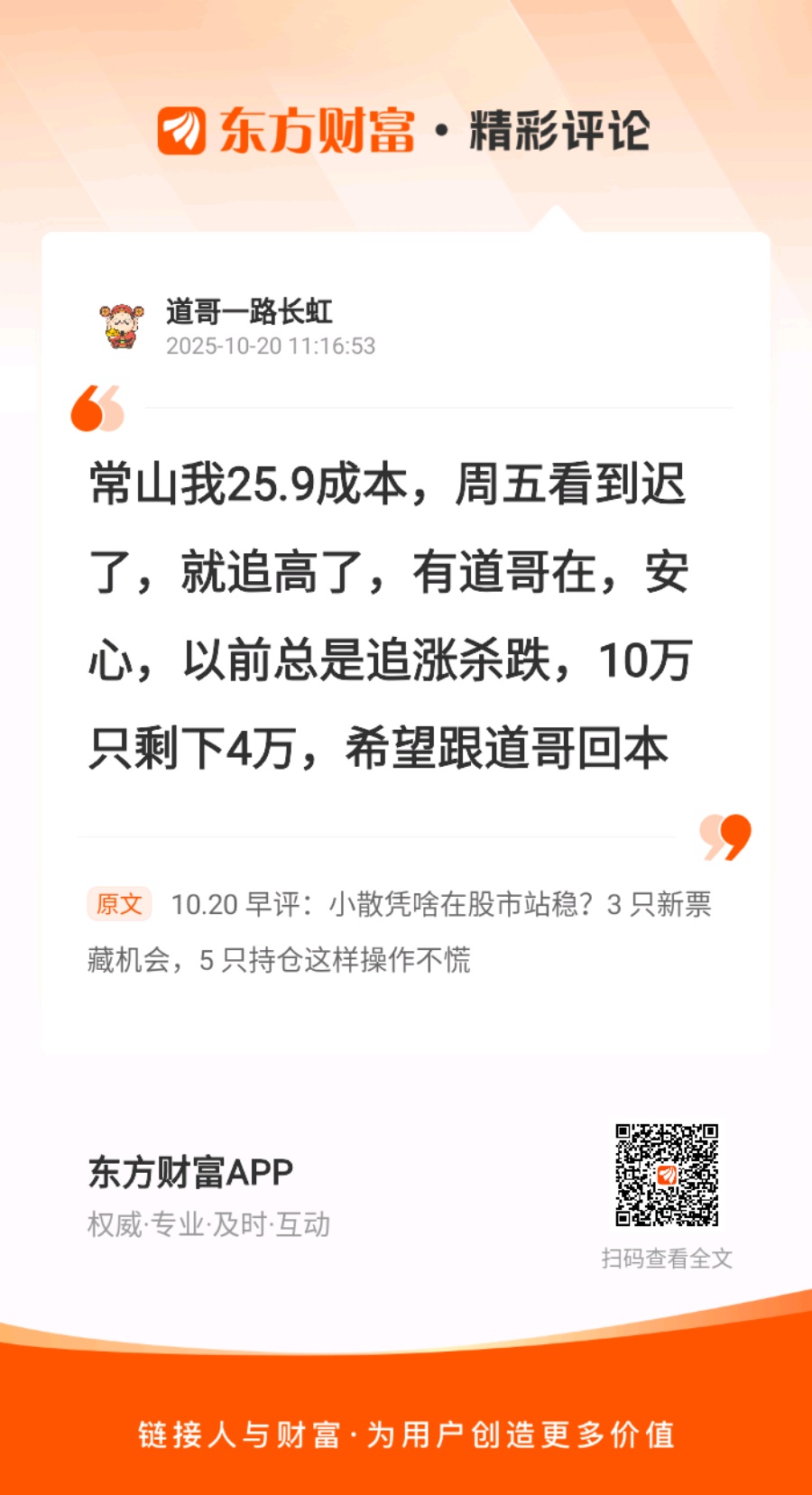 上周五市场那么惨,不少人割离,其实 “波动不是风险,本金的永久性丧失才是”。咱炒股的初心是为了更好的生活,不是为了跟市场较劲。今天就记住:只做自己懂的票,不贪多、不硬扛,内核稳定才是最硬的实力 —— 你比股市认知高,波动就只是风景,不是风险。